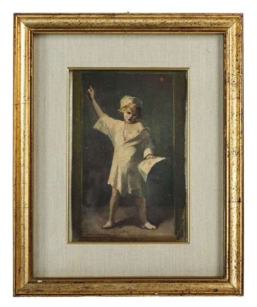 Francesco Ghittoni "Bambino" olio su cartoncino (cm 25x17) in cornice (difetti)
