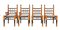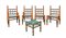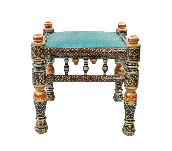 Lotto composto da quattro sedie in legno tornito e dipinto e un panchetto quadr