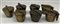 Lotto di sette pile di pesi dette "pile di Norimberga" in bronzo. Secolo XIX (h max cm 4,5) (difetti e mancanze)