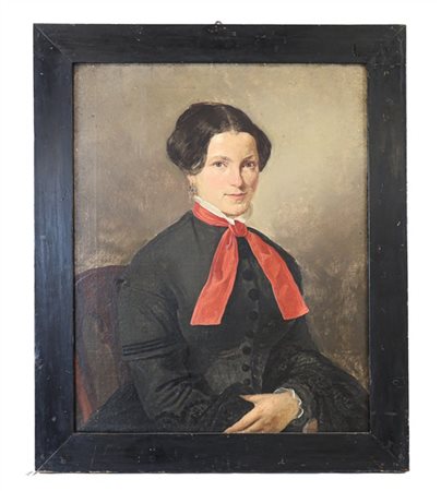 Scuola del secolo XIX "Ritratto di gentildonna" olio su tela (cm 74x60) in co
