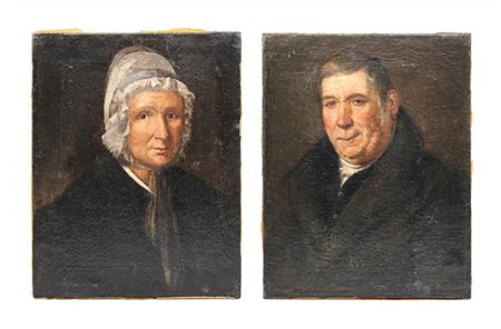 Ignoto del secolo XIX "Coppia di Ritratti di coniugi" oli su tela (cm 50x40)