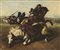 Da modelli del secolo XVII / XVIII "Scene di battaglia" coppia di dipinti ad o