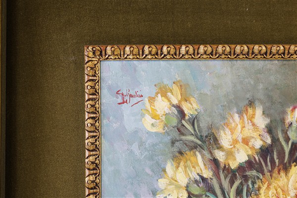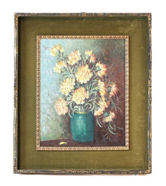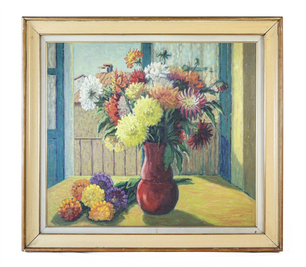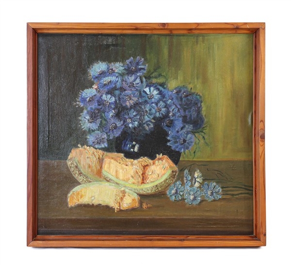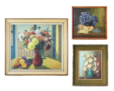 Lotto composto da tre dipinti di vari autori del secolo XX, ad olio raffiguranti vasi di fiori e composizione con zucca e fiori, su diversi supporti, di diverse misure (cm max 70x80), di cui uno firmato