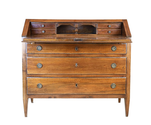 Ribalta in noce a due cassetti e mezzo con calatoia celante quattro tiretti e v