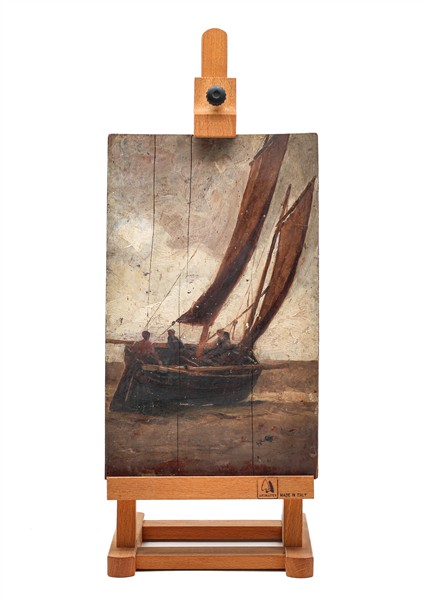 Ignoto di inizio secolo XX "Barca in secca" olio su compensato (cm 26x17) pog