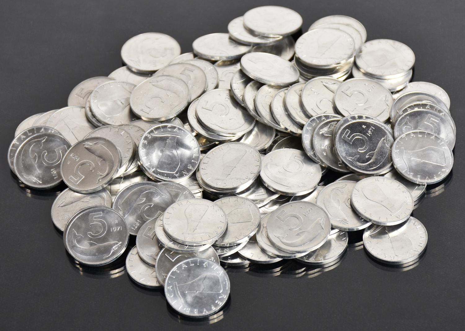 Lotto 94 | LOTTO DI 100 MONETE DELLA REPUBBLICA ITALIANA composto da: 5 lire 1971