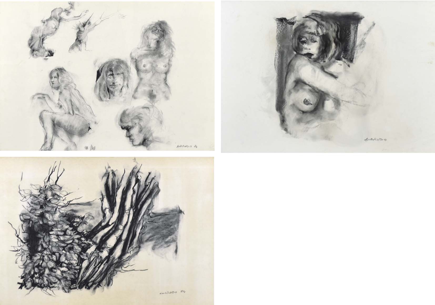 AMBROGIO GIANNI Treviso 1928 Soggetti vari 1974 lotto di 3 tecniche miste su carta 35x50 cad. tutte firmate e datate in basso