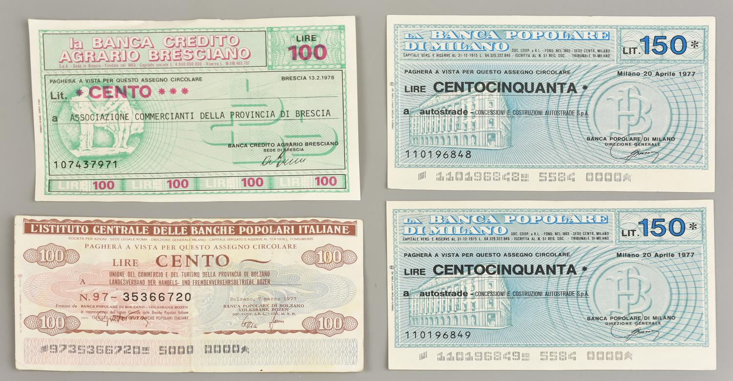 LOTTO DI ASSEGNI CIRCOLARI composto da 4 assegni emessi nel 1977/1978