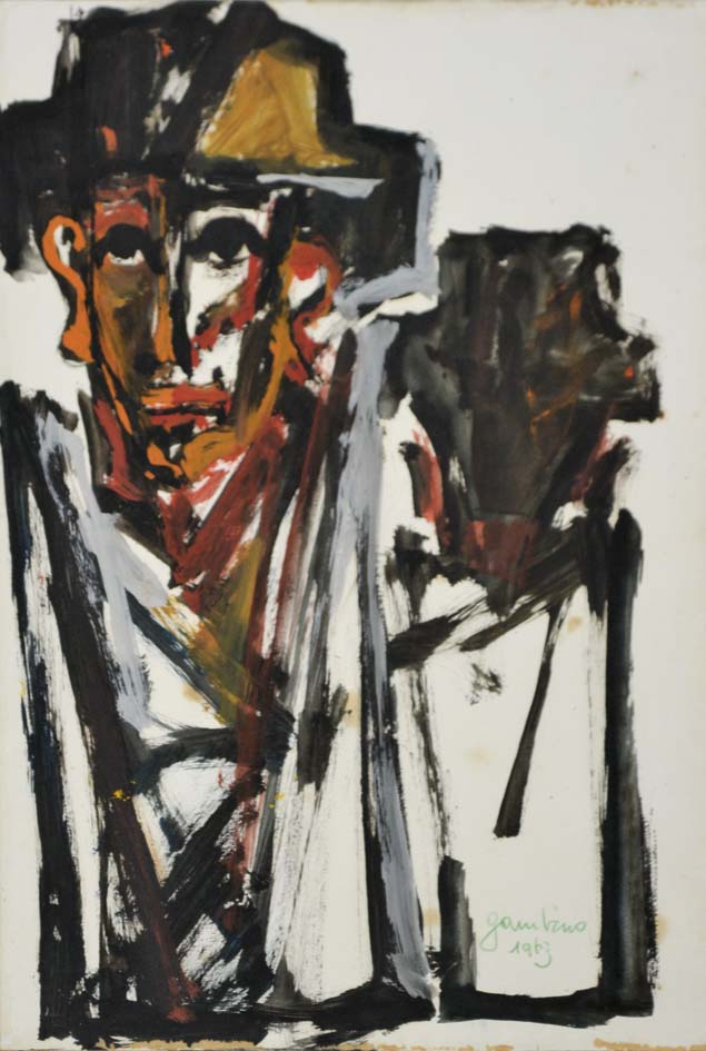 GAMBINO GIUSEPPE Vizzini 1928 - Preganziol (Tv) 1997 Figure 1963 olio su carta intelata 50x35 firma e data in basso a destra