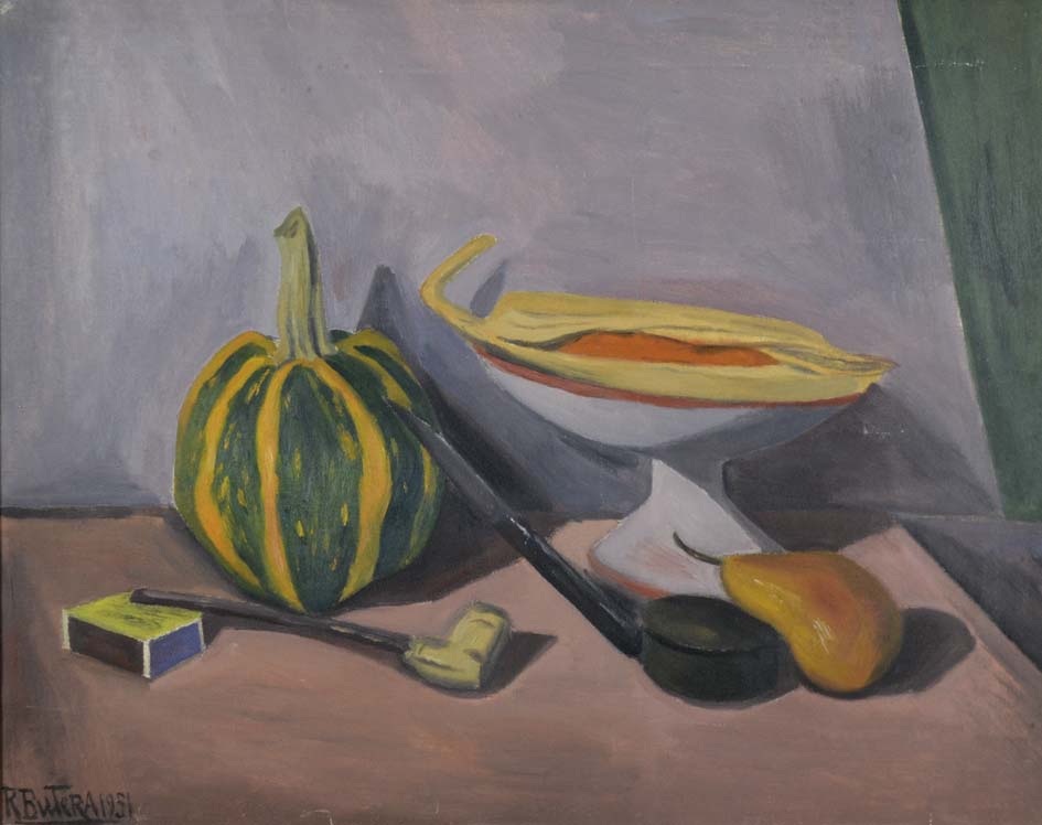 BUTERA REMIGIO Agrigento 1903 - Venezia 1968 Natura morta con zucca e pipa...