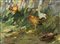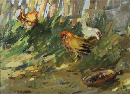 PRIVATO COSIMO Venezia 1889 - 1971 Galline olio su cartone pressato 31,5x43,5 firma in basso a sinistra