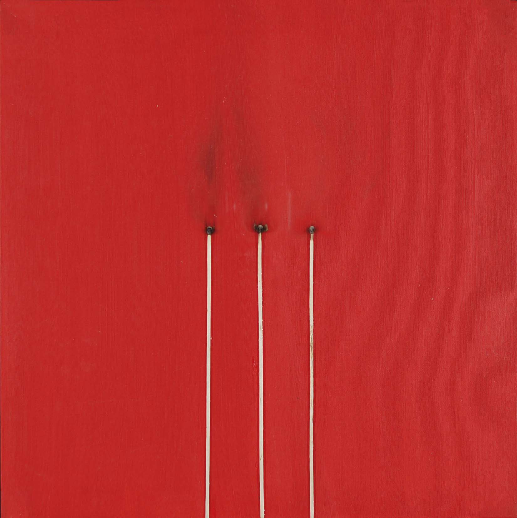 AUBERTIN BERNARD Fontenay-aux-roses 1934 Dessin de feu 2010 fiammiferi bruciati su tela 50x50 cm firma al retro Bibliografia "Bernard Aubertin Sensorialità e Trascendenza" a cura della Galleria d'Arte Rosenberg Milano pag. 32 autentica dell'Autore su foto