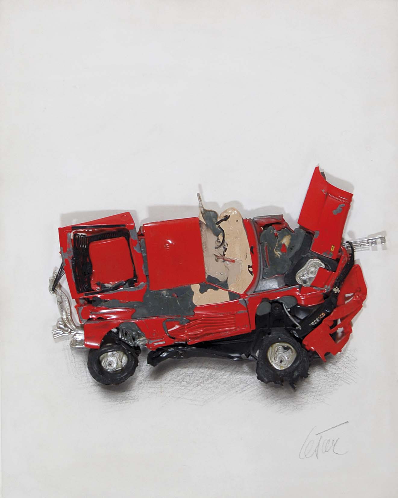 CESAR Marsiglia 1921 - 1998 Ferrari compressione di Ferrari su tavola 49x38 cm firma in basso a destra autentica Archivio Denyse Durand-Ruel nr. 5801 conferma tramite email provenienza Galleria Soave Alessandria - certificato su foto