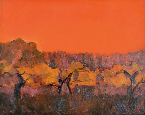 BORSATO RENATO Venezia 1927 - 2013 Vigneto in autunno olio su tela 40x50 firma in basso a destra firma e titolo al retro autentica della Galleria la Roggia Brescia su foto