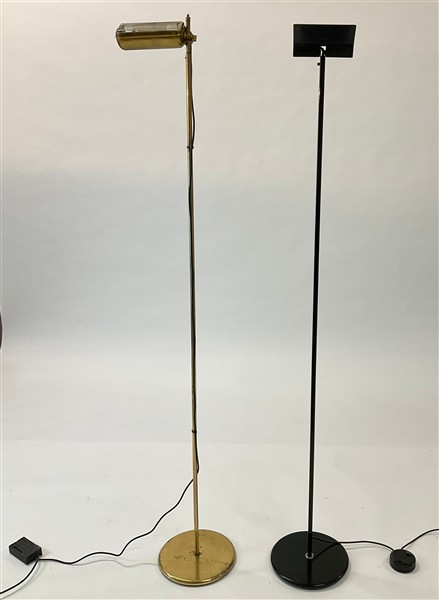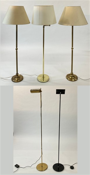 Lotto di quattro lampade da terra di forme e manifatture diverse in ottone e metallo laccato nero. Italia, anni '70/'80. (h max cm 186) (difetti)