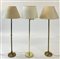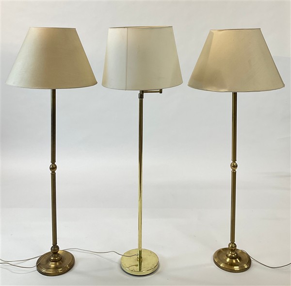 Lotto di quattro lampade da terra di forme e manifatture diverse in ottone e me