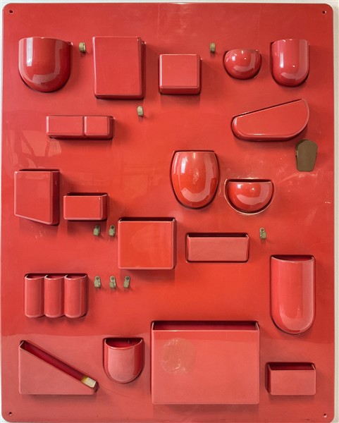 Pannello portaoggetti modello "Utensilo". Produzione Design M, Germania Ovest, 1970ca. ABS verniciato rosso. (cm 67x88) (gravi difetti)