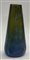 Vaso in vetro soffiato verdino con superficie esterna fortemente iridata e decorata a macchie blu, celesti e bianche. Austria, secolo XX. (h cm 27)