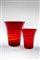 Due vasi modello "8886". Produzione Whitefriars, Gran Bretagna, s20. Vetro soffiato rosso rubino con fascia spiraliforme a rilievo. (h max cm 20)