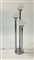 Lampada da terra a tre luci in metallo cromato e vetro incolore e lattescente.