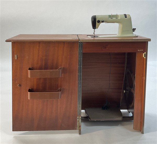 Macchina da cucire Salmoiraghi Filotecnica laccata grigia modello "Salmoiraghi 11" con mobile chiudibile. (gravi difetti)
