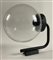 Lampada da parete. Italia, anni '70. Struttura in metallo verniciato nere con diffusore sferico trasparente incolore. (l cm 34)