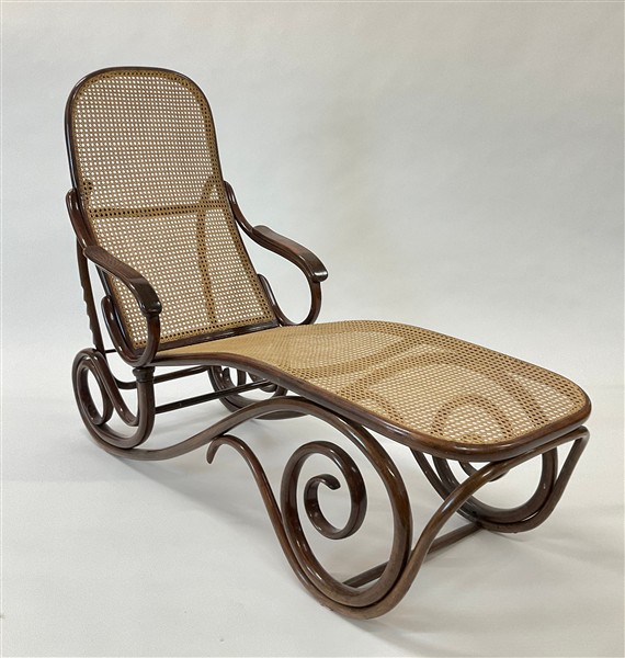 Lotto composto da tre sedie di Jacob & Josef Kohn, una poltroncina Thonet, e una chaise longue in faggio curvato al vapore. Austria, inizio secolo XX. (gravi difetti e restauri)
