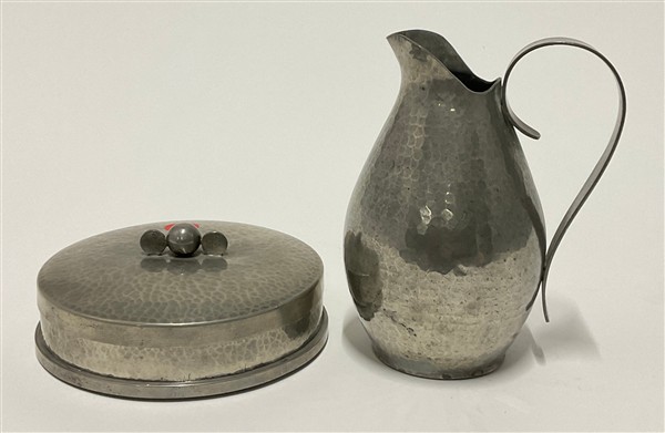 Jean Després Porta oggetti e brocca in metallo martellato. Francia, 1925ca. Firm