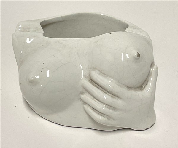 Posacenere in terraglia smaltata bianca sotto vetrina. Milano, fine anni '70 -