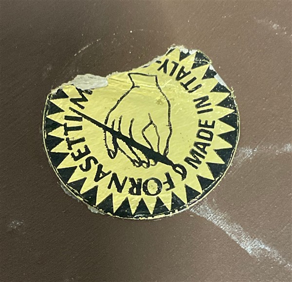 Posacenere in terraglia smaltata bianca sotto vetrina. Milano, fine anni '70 - inizio anni '80. Recante etichetta cartacea di Fornasetti in quanto facente parte di una selezione di oggetti non realizzati dall'Atelier, ma venduti nel negozio. (cm 14x7x12)