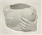 Posacenere in terraglia smaltata bianca sotto vetrina. Milano, fine anni '70 - inizio anni '80. Recante etichetta cartacea di Fornasetti in quanto facente parte di una selezione di oggetti non realizzati dall'Atelier, ma venduti nel negozio. (cm 14x7x12)