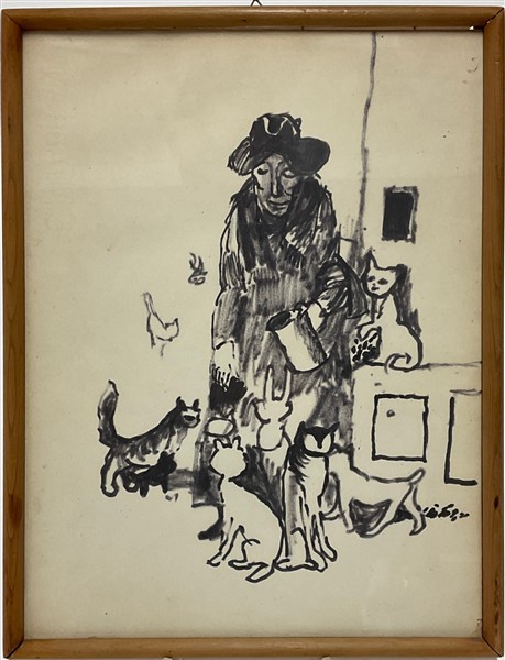 Fulvio Bianconi "La Gattara" Pennarello su carta (cm 33x24) firmato in basso a d