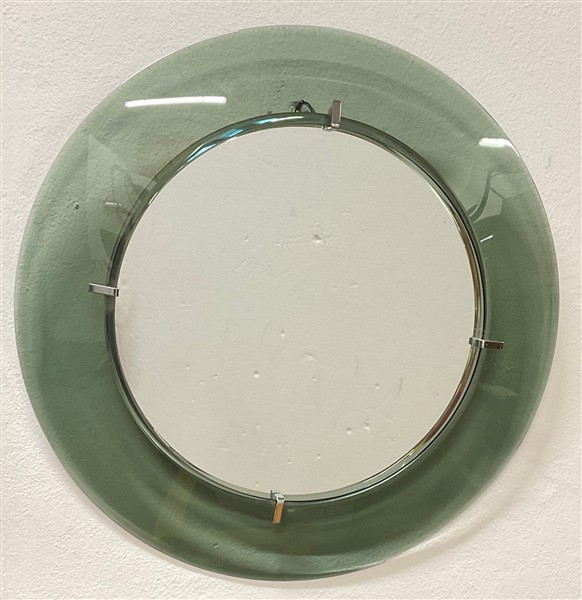 Veca Specchio circolare con cornice in vetro fumé trasparente. Italia, anni '70.
