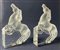 Due fermalibri in vetro soffiato in stampo acidato sulla superficie esterna raffiguranti cavalli. Francia, anni '90/2000. Firmato a punta "Lalique France". (h cm 21,5)
