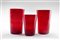 Tre vasi modello "8473". Produzione Whitefriars, Gran Bretagna, anni '60. Vetro soffiato trasparente rosso rubino con rilievi a festoni sulla superficie interna. (h max cm 20)