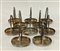 Lotto composto da venti vassoietti con manico, di cui uno completo di saliera e pepiera in vetro. Italia, anni '40/'50. Metallo argentato. Marcati a incussione sotto la base. (cm 14,5x19) (lievi difetti)