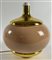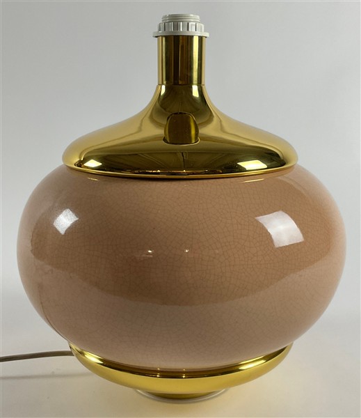 Lampada da tavolo. Italia, anni '70. Ceramica smaltata rosa a effetto craquelé e metallo dorato. (cm 35x39) (mancante del paralume)