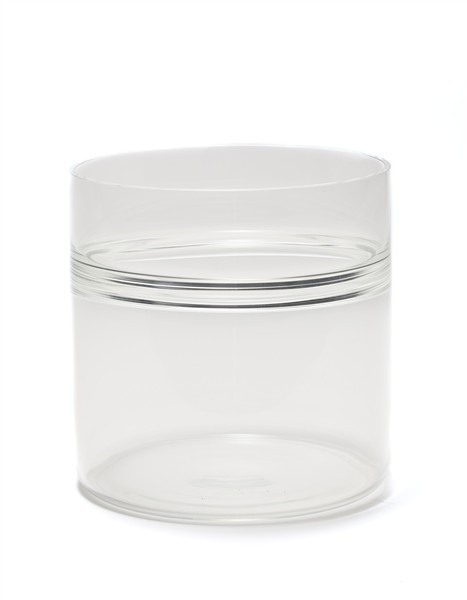Vaso in vetro soffiato trasparente incolore. Murano, anni '70. Firmato a punta. (h cm 19,5; d cm 20)