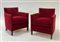 Coppia di poltroncine in velluto rosso borchiato e struttura in legno massello.