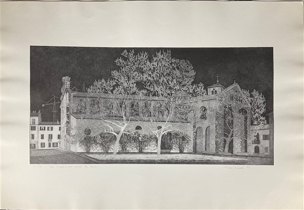 Federica Galli "San Simpliciano senza la luna" 1989 acquaforte (lastra cm 39,5x7