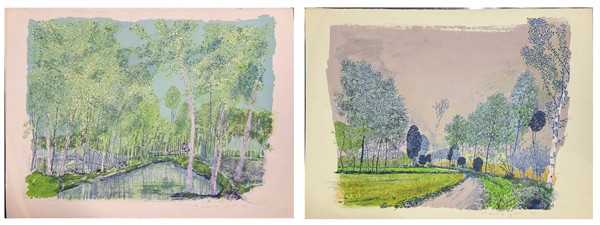 Federica Galli "Senza titolo" 1969 due litografie a colori cm 54,5x75 Firamate e