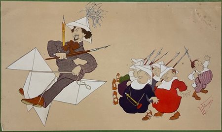 album contenente stampe applicate su cartoncini colorati raffiguranti caricature stampate per il "Giornalino della domenica" (9 pz.)