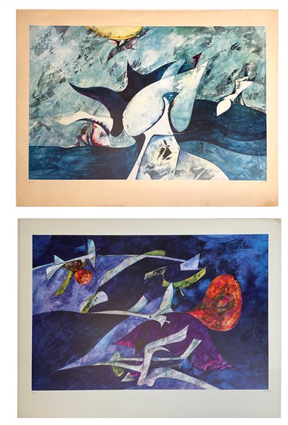 Gianni Dova due stampe offset a colori cm 63x82 firmate e numerate in basso a ma