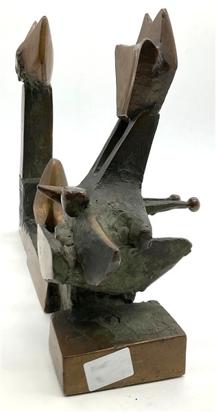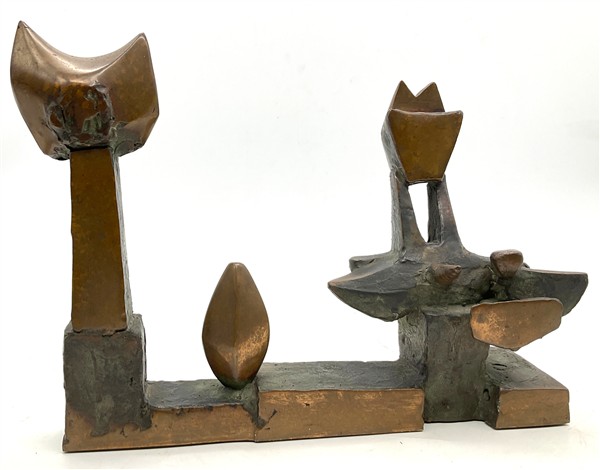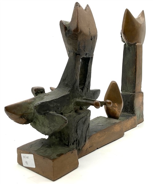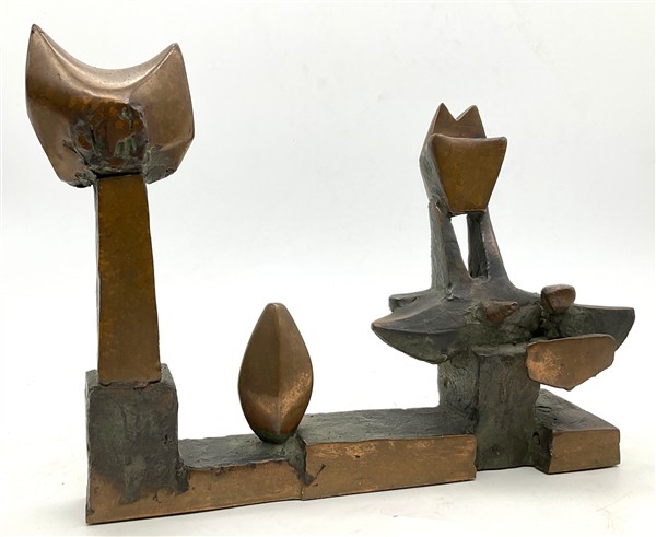 Lotto 444 | Rinaldo Bigi "Gatto con amici attenti" scultura in bronzo cm 24x30,5x7,5 non fi