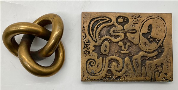 Lotto composto da due sculture multipli - d'Après da Escher e Mirò in bronzo dorato di misure diverse