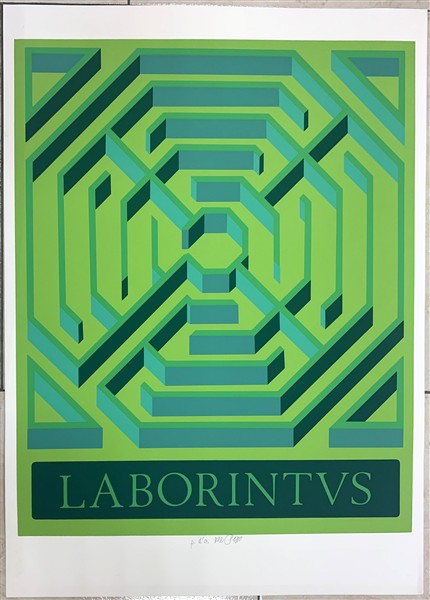 Lucio del Pezzo "Laborintus" litografia a colori - prova d'artista cm 70x50 Fir