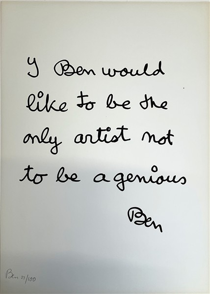 BEN VAUTIER "I Ben would like to be the only artist not to be a genious" serigr
