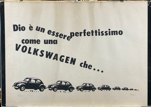EMILIO ISGRÒ "Dio è un essere perfettissimo come una Volkswagen che..." litogra