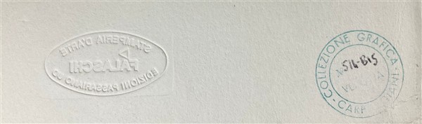 firmata e numerata 62/99 in basso a matita, timbro a secco Stamperia d'Arte Falaschi in basso a sinistra (lievi difetti)
