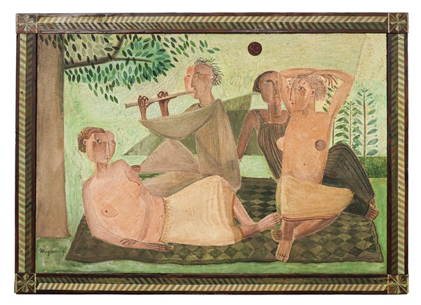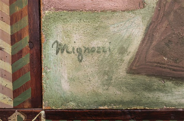 firmato in basso a sinistra, in cornice dipinta dall'artista (lievi difetti)